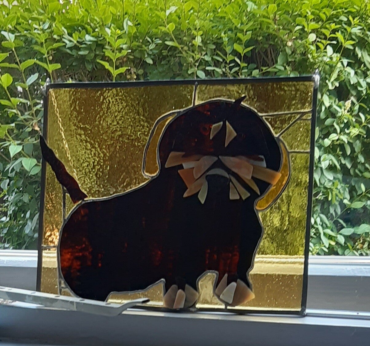 Eigenlijk wilde ik het glas direct op het frame solderen, maar dat ging niet vlg Trudie.